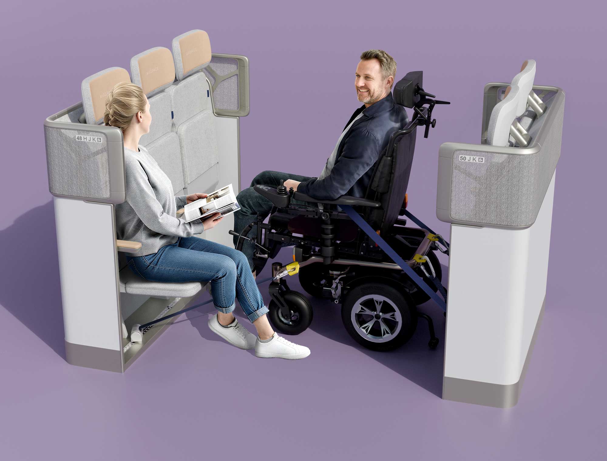 The U Suite concept would enable disabled travelers to remain in their own personal wheelchair throughout the flight, secured directly to the aircraft floor. It would eliminate the need for wheelchair transfers and reduce the risk of wheelchair damage. Most importantly, this and other wheelchair securement solutions would grant greater independence to disabled passengers.