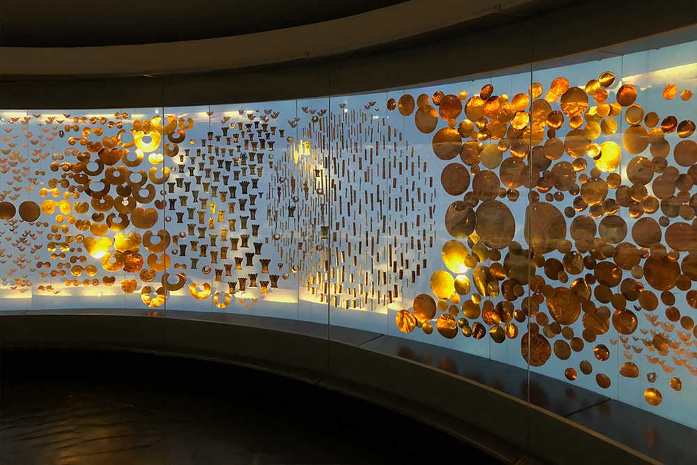 With some 55,000 pieces, the museum boasts the largest collection of gold artifacts in the world. The exhibits are expansive and spread across three different floors (each accessible by elevator). Many of the objects on display date to pre-Columbian times, the period prior to the European conquests in the Americas.