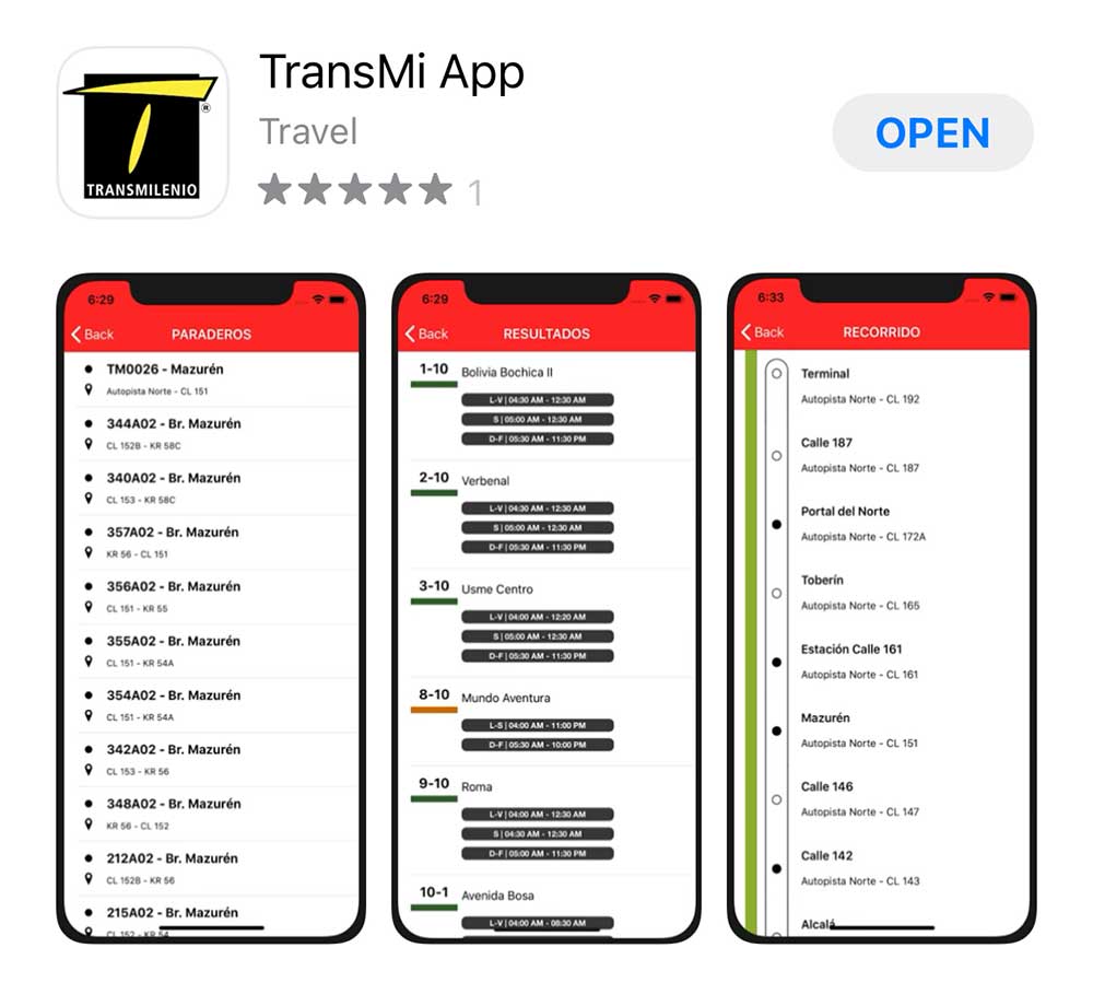 I found myself using the Moovit app more frequently than the TransMi App, mostly because I was familiar with Moovit, but both apps offer accurate directions between points and are presented in English. Download links for the apps are provided below: