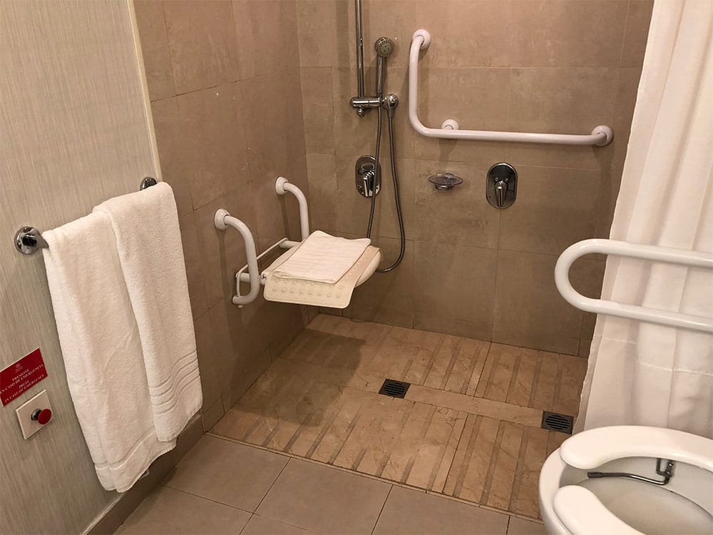 Accessible guest rooms have a roll-in shower with grab bars, an accessible toilet and plenty of space to move a wheelchair around in the room. All together, the Sheraton Convention Center is one of the nicest hotels in Buenos Aires.