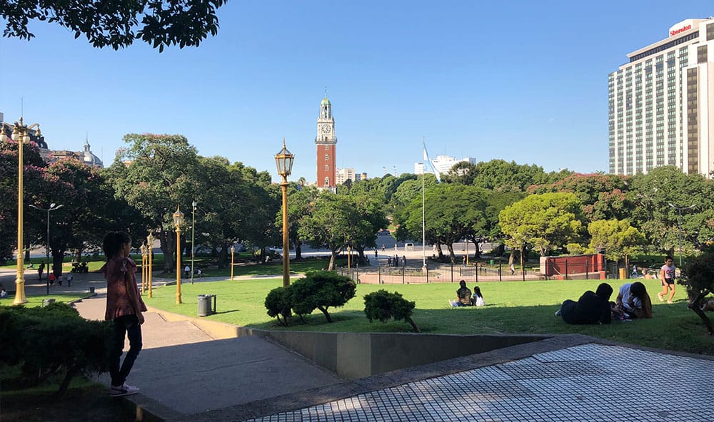 I spent quite a bit of time relaxing in the plaza, as it was located nearby my hotel, the Sheraton Buenos Aires Hotel & Convention Center. The park is elevated, offering a nice view toward the Torre Monumental clock tower, but going up and down the accessible sidewalk/route alongside the plaza may be difficult for manual wheelchair users.