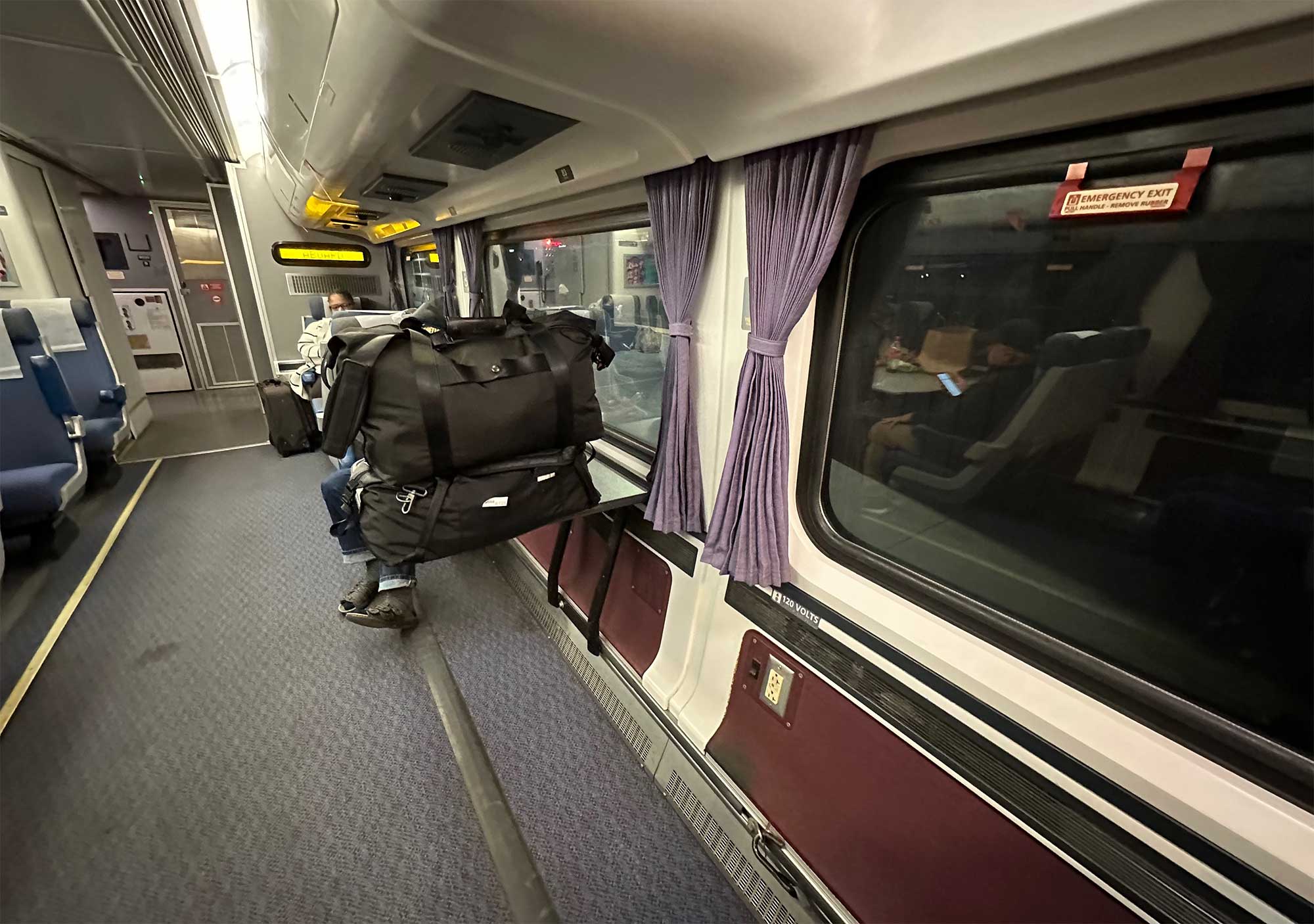 Seeing me on the platform, the Amtrak conductor led me to the forward car, which had fewer passengers. She deployed a wheelchair lift from the train which handled the weight of me and my heavy power wheelchair well. I had never ridden Amtrak in California before (only local commuter rail and subway trains), so I was surprised to find a built-in wheelchair lift — the other train I’ve seen with one was on the wheelchair accessible SJ train from Copenhagen, Denmark to Stockholm, Sweden.