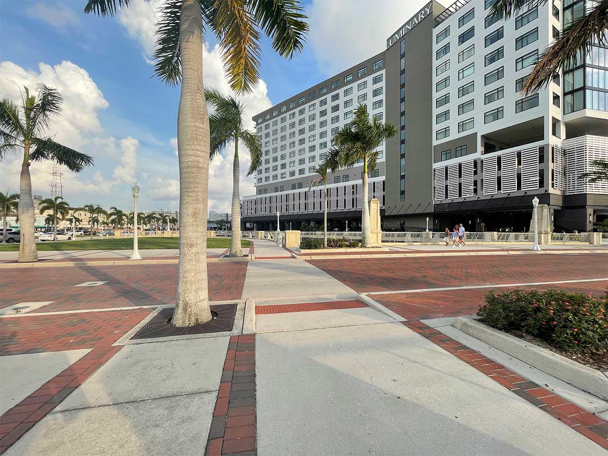 Fort Myers is one of the smaller destinations that I’ve produced a travel guide for and the concern about sidewalk accessibility for tourists is limited to a few key areas. Downtown Fort Myers and Fort Myers Beach are the areas where tourists might want to walk/roll rather than rely on an automobile. As such, in considering the accessibility of sidewalks for this destination, I limited my critique to those areas.