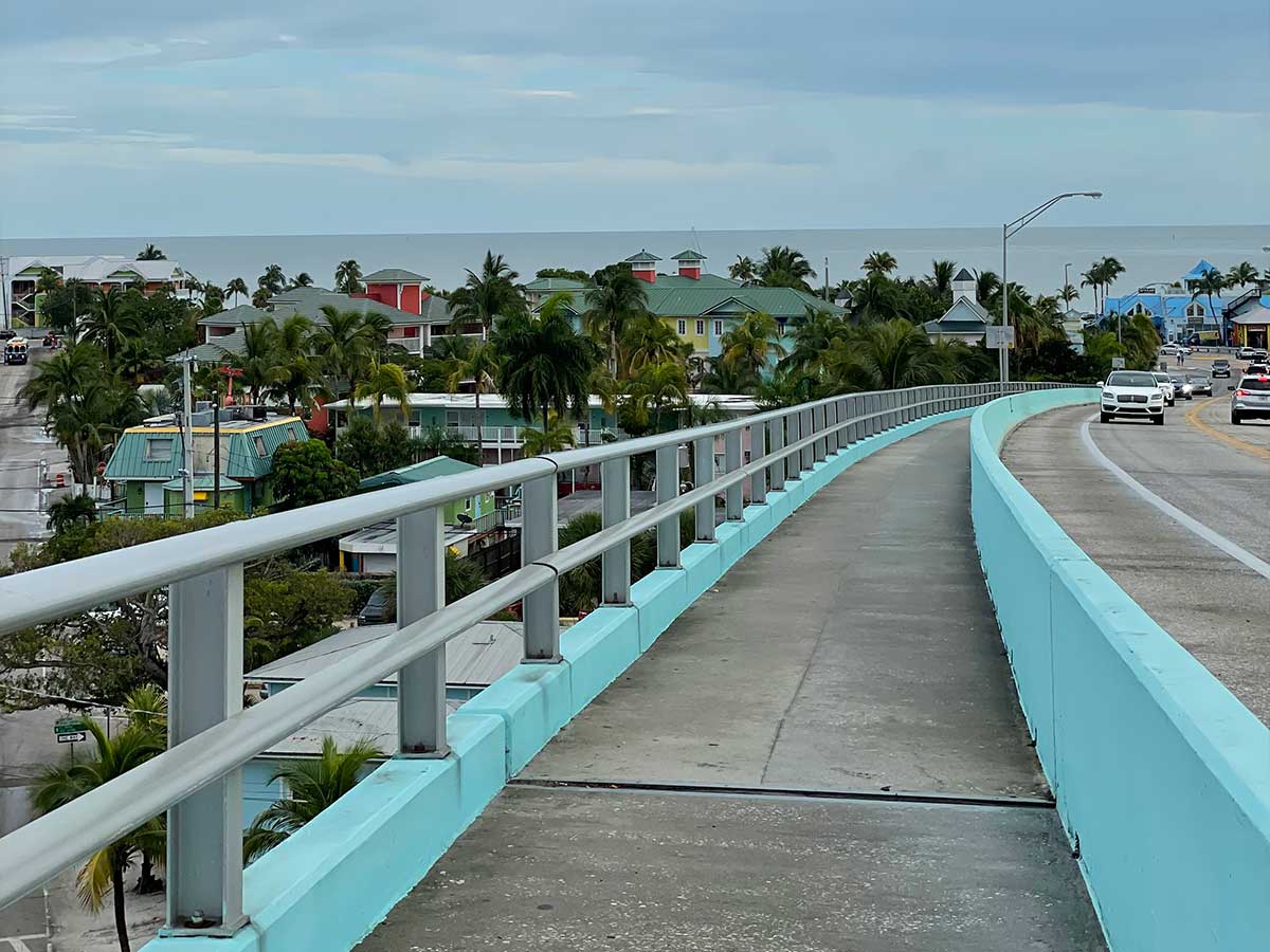 In Fort Myers Beach, sidewalks are a bit older with cracks and potholes in the pavements being a bit more common. I still managed to get around easily with my power wheelchair, and even crossed the Matanzas Pass Bridge.