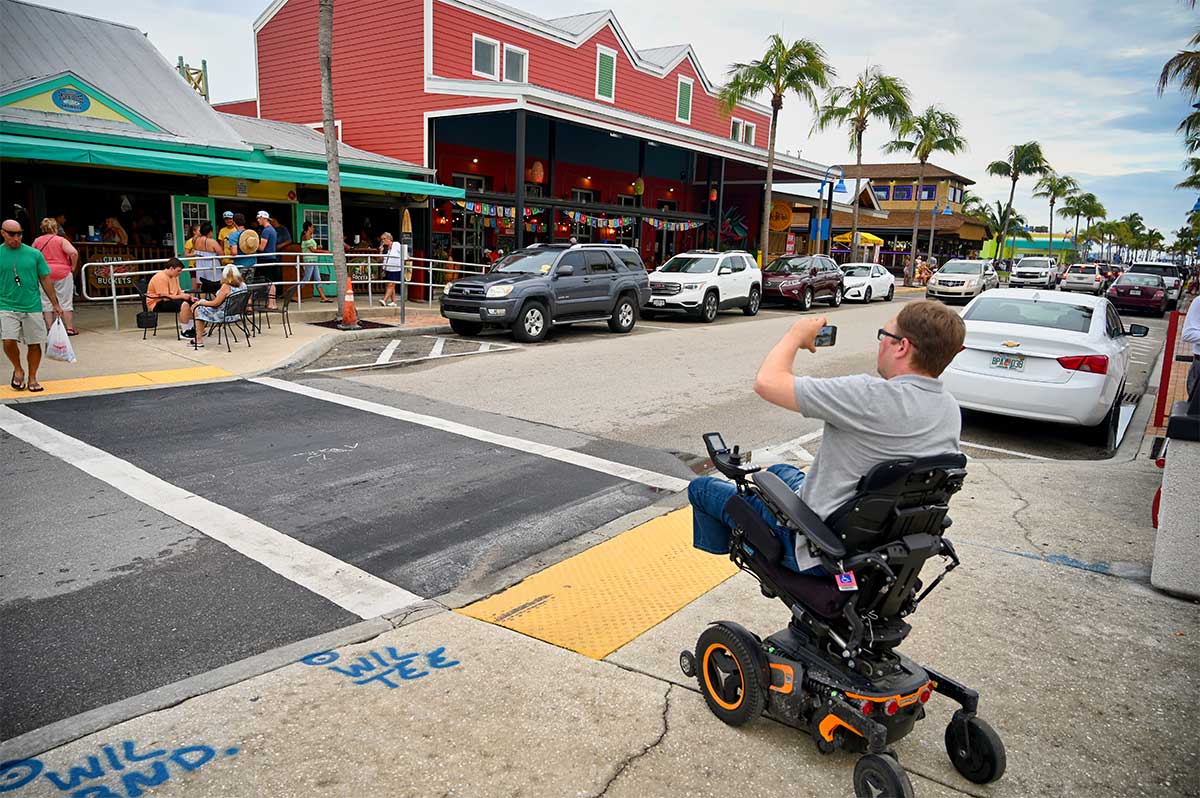 The sidewalks in the major tourist areas of Fort Myers and Fort Myers Beach are generally wheelchair accessible. I rolled around these areas in my wheelchair, seeing many different sidewalks. The typical features of a sidewalk, such as curb cuts and crosswalks, were accessible and the city’s geography is largely flat.