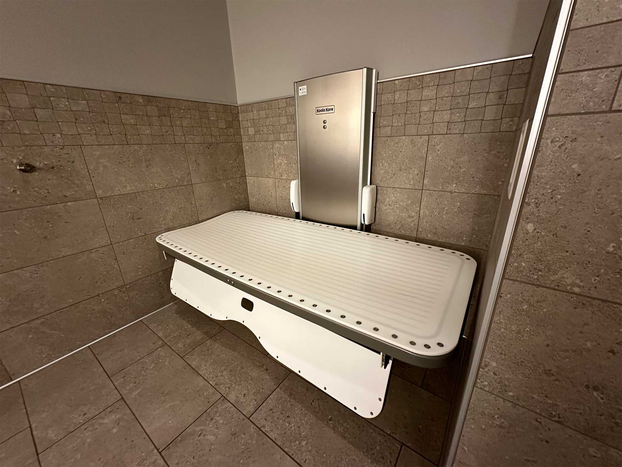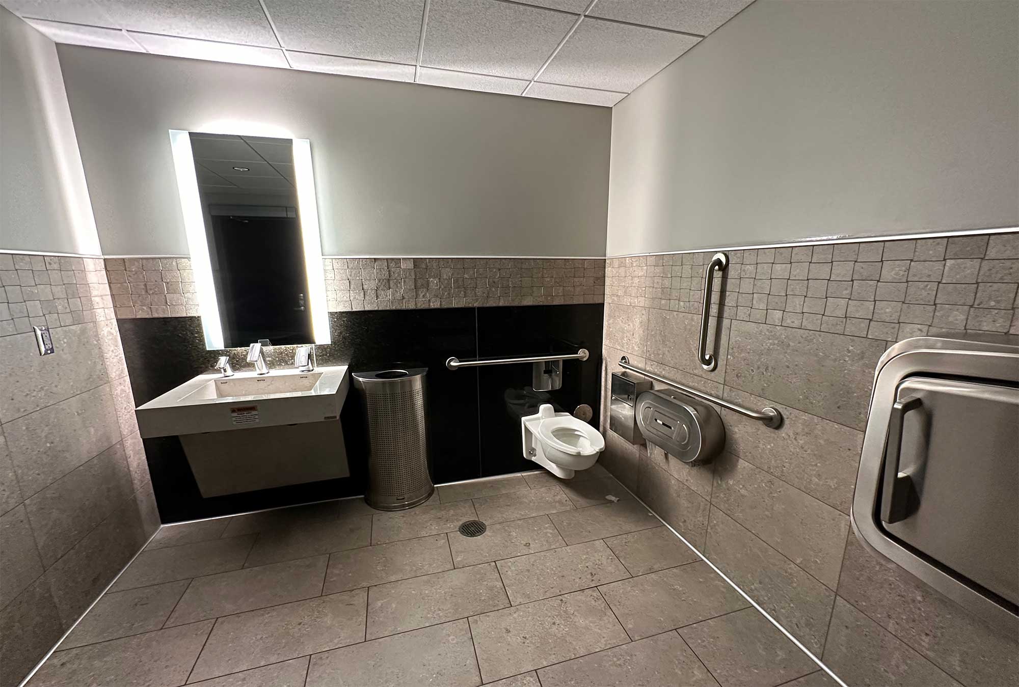 The airport’s bathrooms are wheelchair accessible and outfitted with ADA stalls for wheelchair users and people with disabilities. A number of private family restrooms are available throughout the terminal building. As part of the airport’s $140-million transformation dubbed “Project Gateway,” FWA installed an adult changing table in a private unisex bathroom near gate seven, which dramatically improves accessibility for adult travelers with disabilities.
