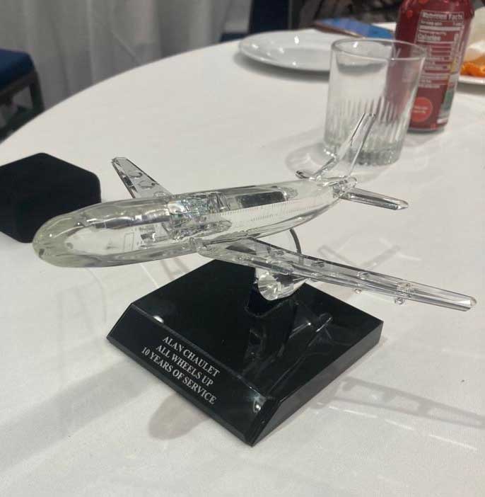 During the event, I was honored when Michele presented me with an award recognizing my 10 years of service to All Wheels Up. It has been tough work for a long time and I’ve sacrificed a lot, so it was very humbling to be recognized for it.