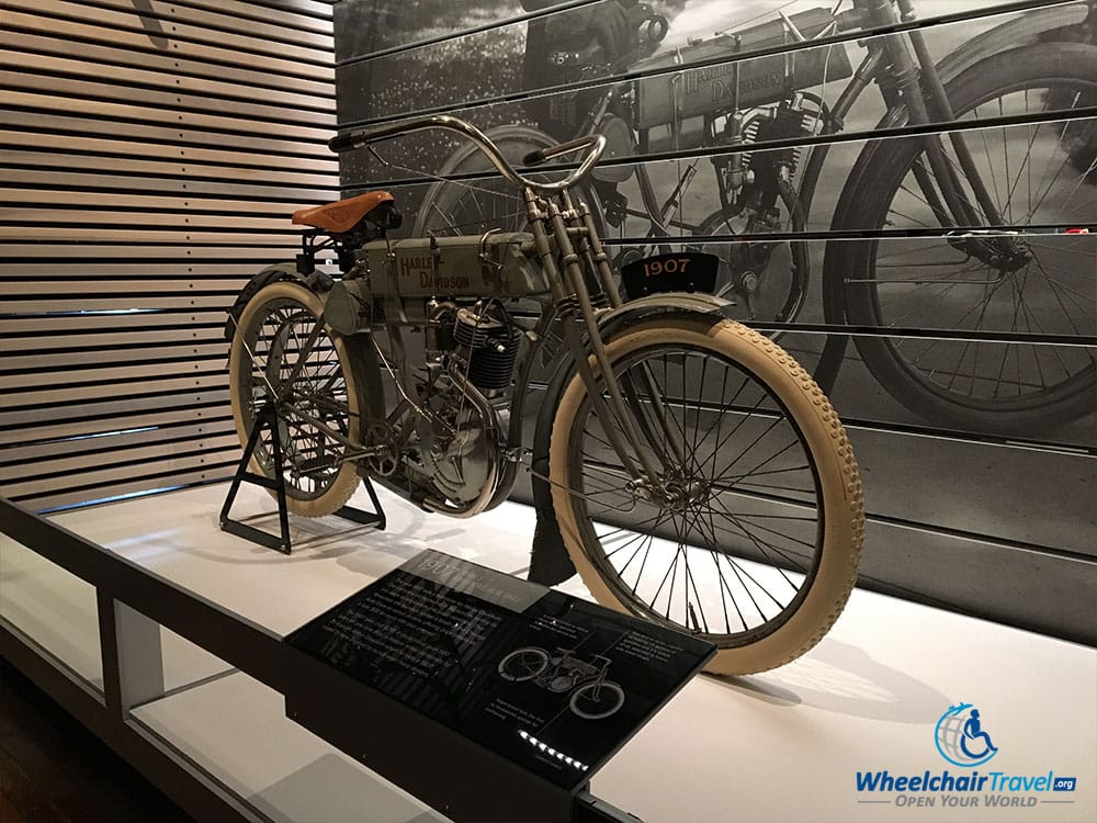 I’m not a motorcycle enthusiast. As a child, I rode a dirt bike a few times, but never came close to a Harley. Now, as a wheelchair user, I doubt I’ll ever ride one. But the Harley-Davidson Museum drew me in as a lover of history.