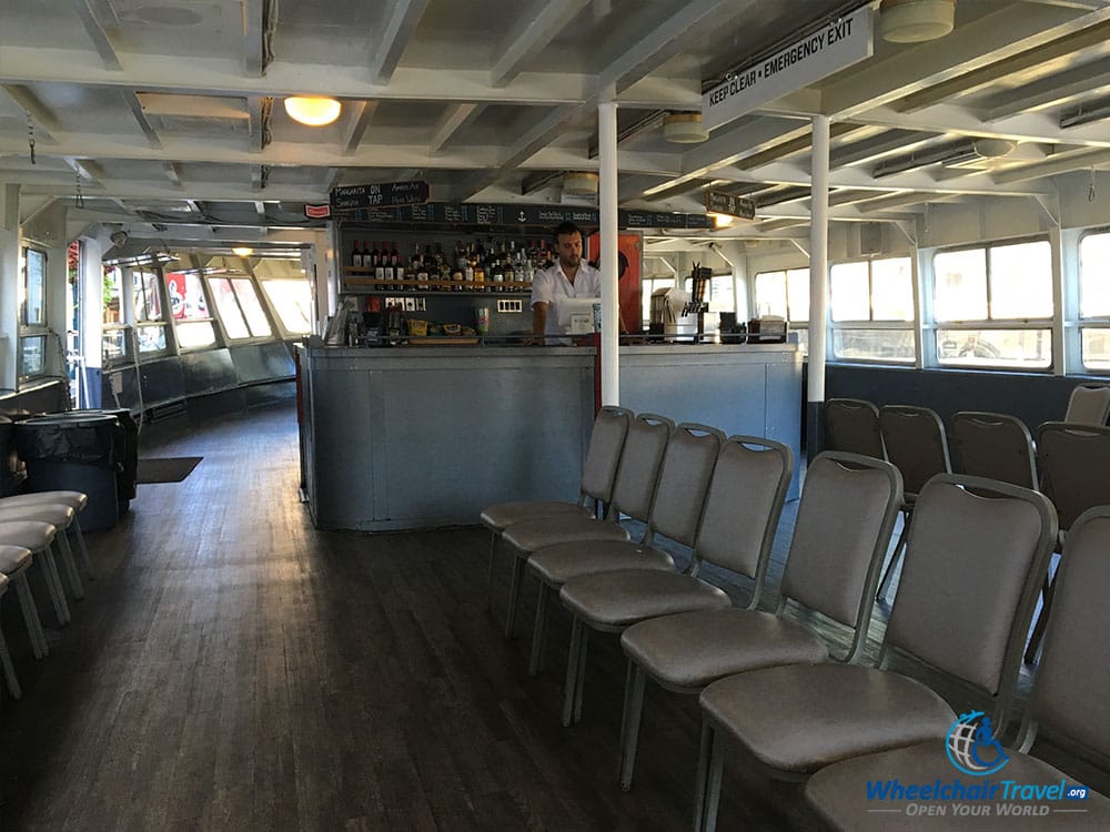 Although the (partially) open-air upper deck is not wheelchair accessible, I had the lower deck all to myself on a 90-minute September afternoon sightseeing cruise. The views were great – especially from the windows that are built-in to the ship’s bow.