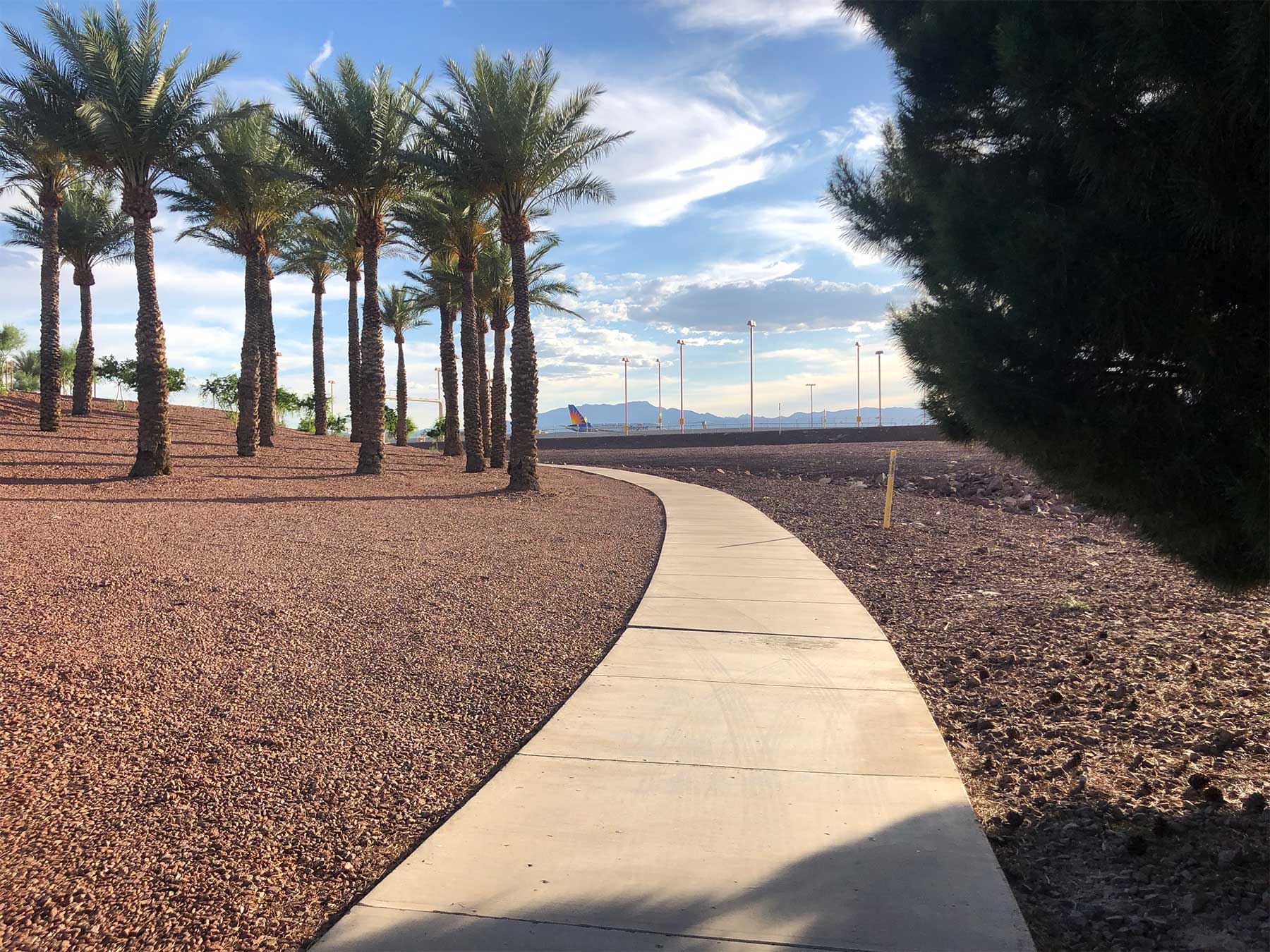In another case, I wheeled from the Las Vegas Strip to the Las Vegas Airport — not because I needed to, but because I wanted to check it out for an article like this. The sidewalks provided throughout the airport campus were wide, smooth and well-manicured… I enjoyed the desert landscape!