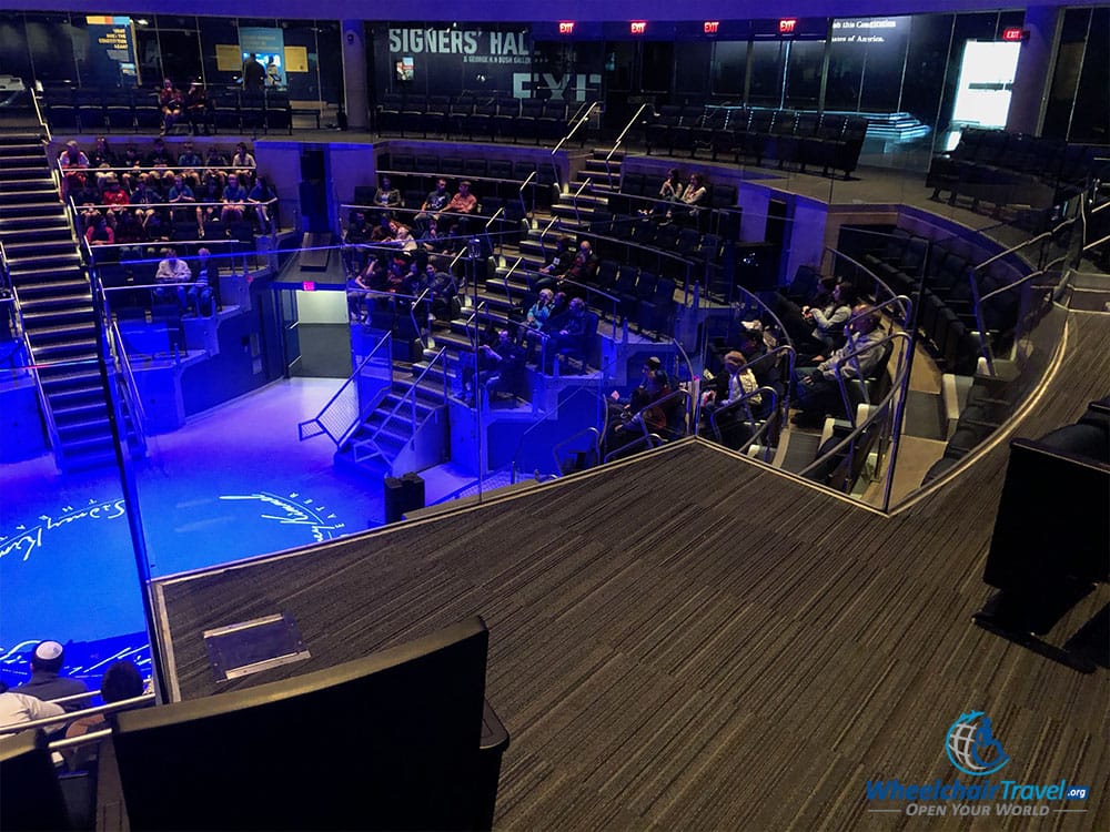 With ticket in hand, proceed to the security tent at least 15 minutes prior to the time indicated on your ticket. Bags and purses are screened by x-ray and visitors pass through a metal detector. Wheelchair users receive a light pat down. Tours of Independence Hall last 30 minutes and are guided by a park service volunteer. Once the tour has finished, visitors are free to explore Congress Hall on a separate guided tour which runs every 30 minutes. While only the first floor is accessible, it is a worthwhile 10 minutes exploring the building where Congress met from 1790 to 1800 and where the first peaceful transition of executive power (President Washington to President Adams) occurred. The Great Essentials Exhibit is wheelchair accessible and open to visitors at their leisure. The exhibit features 18th century printings of the Declaration of Independence, Articles of Confederation and Constitution, plus the inkwell believed to be used in signing both the Declaration and Constitution.