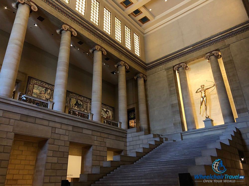 Pictured above is the beautiful grand staircase in the museum’s main atrium. Rest assured, there are elevators to provide wheelchair access to every floor of the museum, and all galleries are wheelchair accessible.