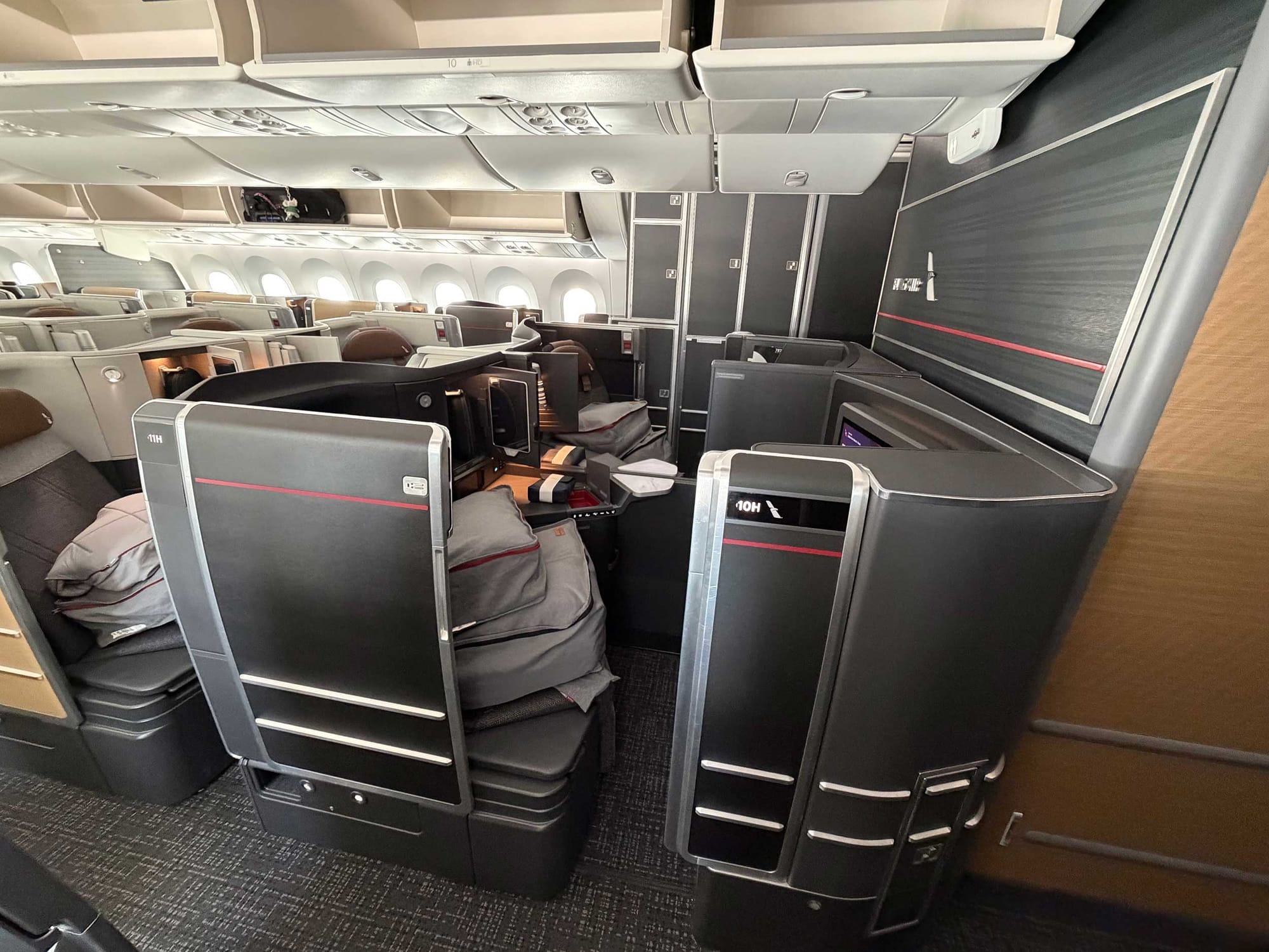 There are 51 Flagship Suites on the Boeing 787-9P, but eight of those suites are slightly larger than the rest and include an additional pillow and blanket. The larger suites, dubbed "Flagship Suite Preferred," are numbered 1A, 1L, 2D, 2H, 10D, 10H, 10L, and 11A. Having sat in one of the standard-sized suites on my first flight aboard the aircraft, I opted for one of the larger suites on my flights to and from Brisbane.