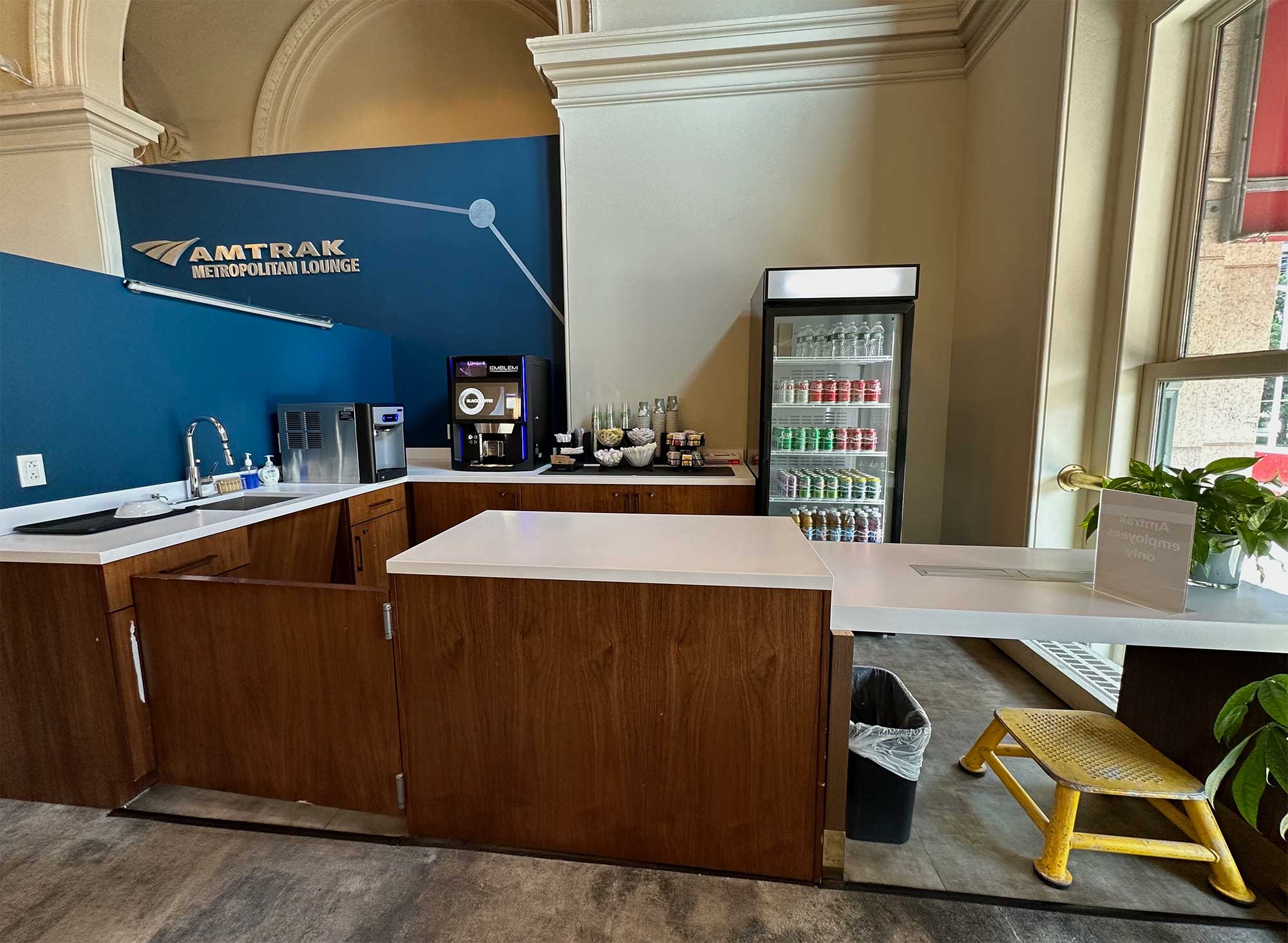 One important note about accessibility: The primary entrance to the Metropolitan Lounge in Boston is via a long staircase. Although elevator access is available, an Amtrak employee must “unlock” access to the mezzanine floor where the lounge is located. If you have access to the Boston lounge, present yourself at the information desk to the left of the Amtrak ticket office, where staff will be available to assist with the elevator. I hope, through some advocacy, to eliminate this need for staff intervention in the future.