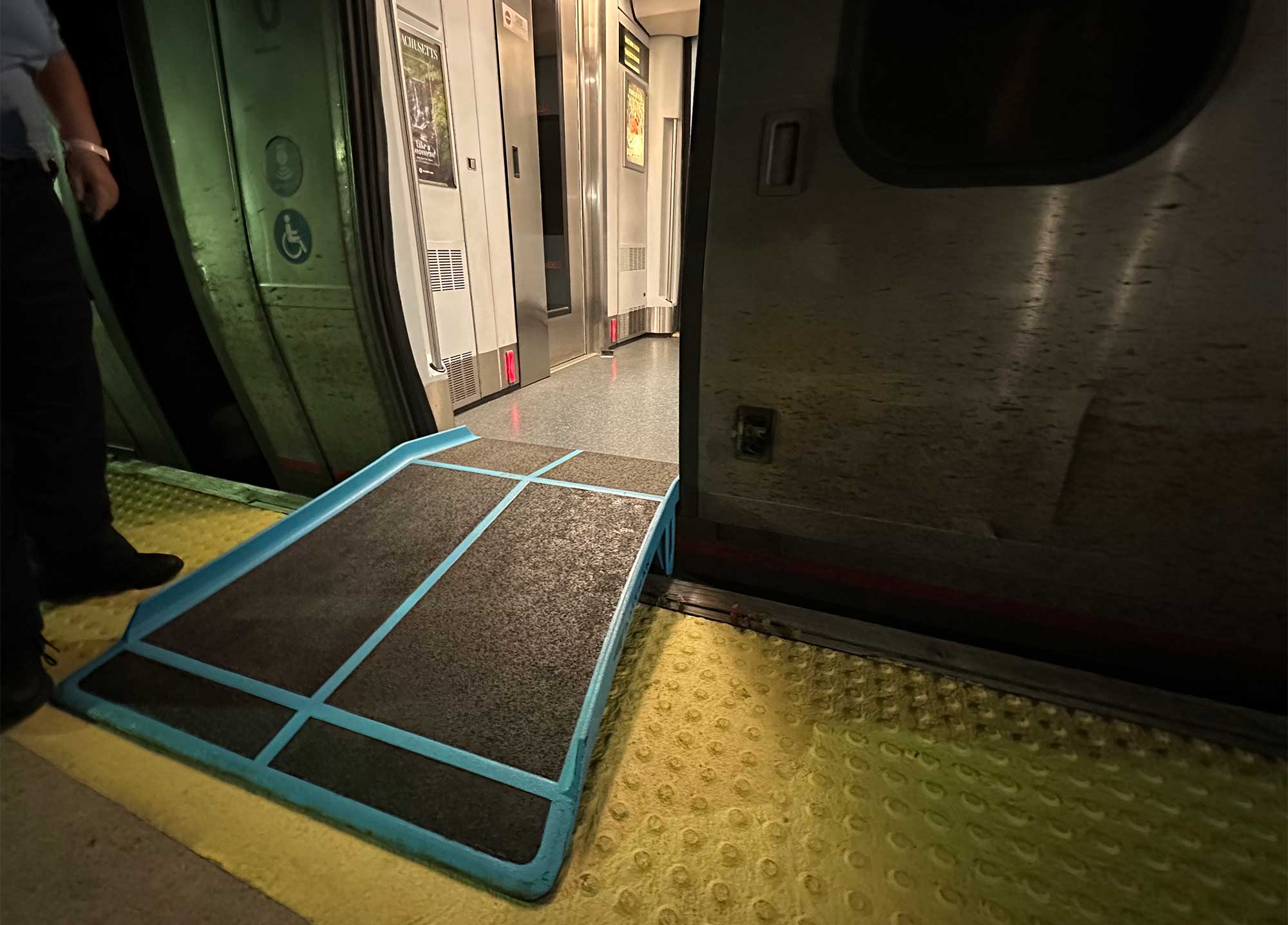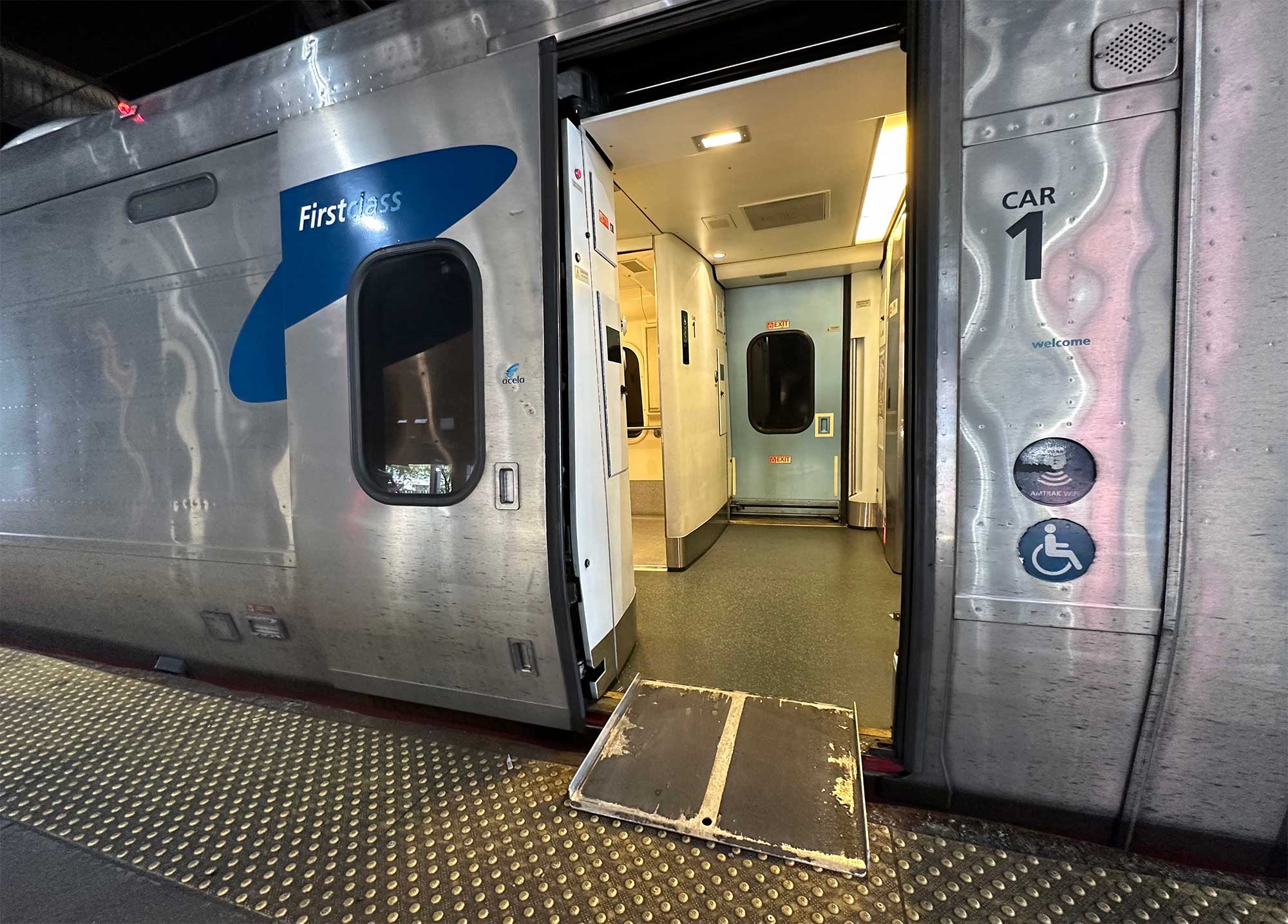 For wheelchair users, a ramp is required to bridge the gap between the Acela train and station platform. Disabled passengers should seek out an Amtrak employee in advance of departure to organize this assistance.
