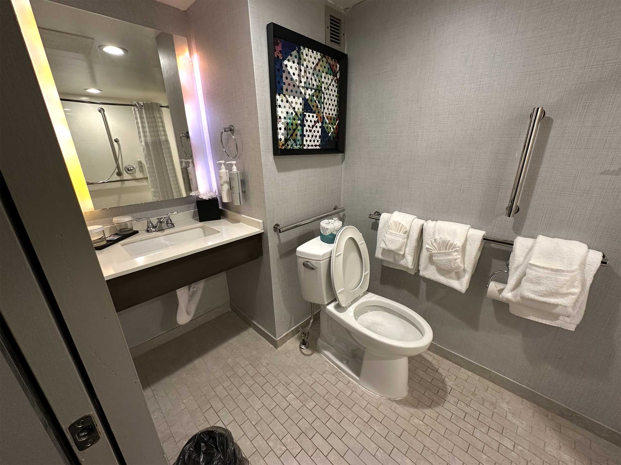 - Richmond Marriott — This downtown hotel advertises accessible rooms with roll-in showers and bathtubs, and the photos suggest a high degree of accessibility.