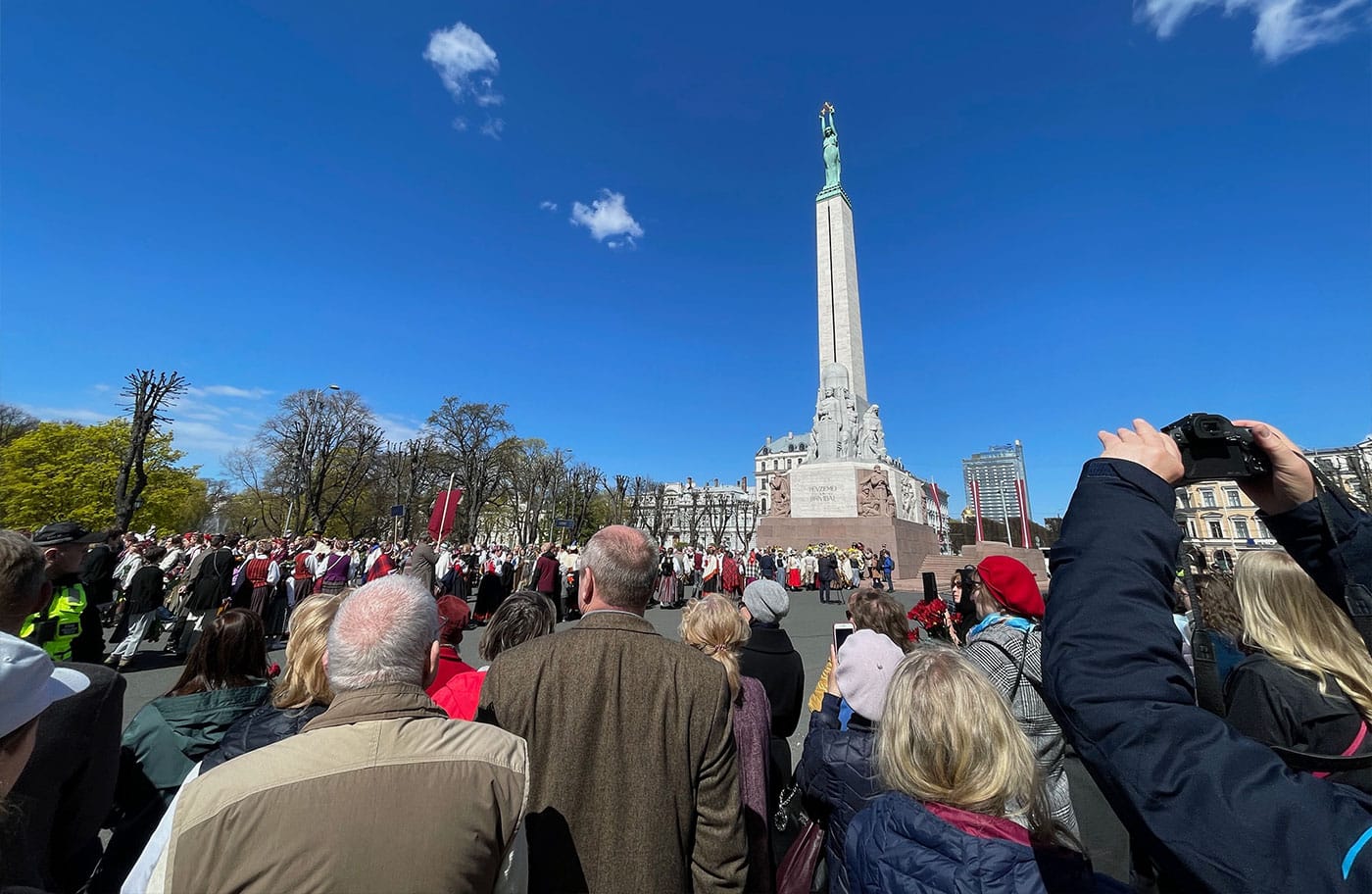 The monumental plaza, located adjacent to the city’s central canal, Bastejkana Park and the National Opera, is the site of many cultural gatherings. During my own trip to Riga in May, thousands gathered at the monument for the occasion of Latvia’s Restoration of Independence Day (celebrated on May 4th), with a ceremony attended by the country’s government officials, dignitaries and a military band.