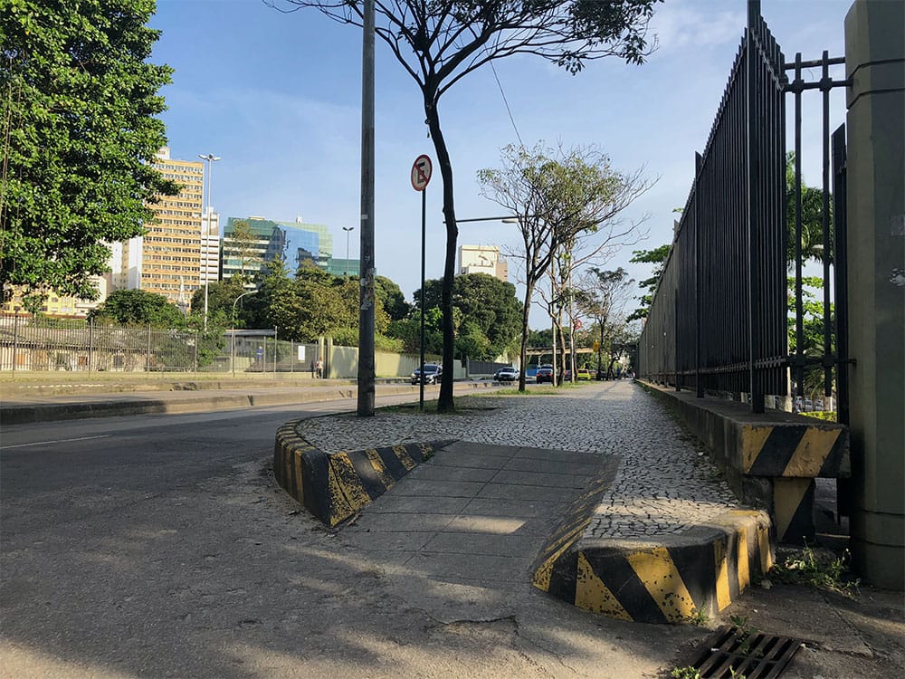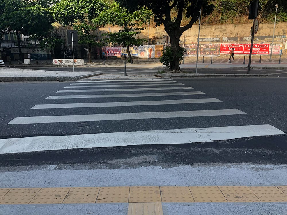 What does sidewalk accessibility in Rio de Janeiro look like? Let’s take a look – you’ll notice accessible features like curb cuts/curb ramps and crosswalk signals are common.