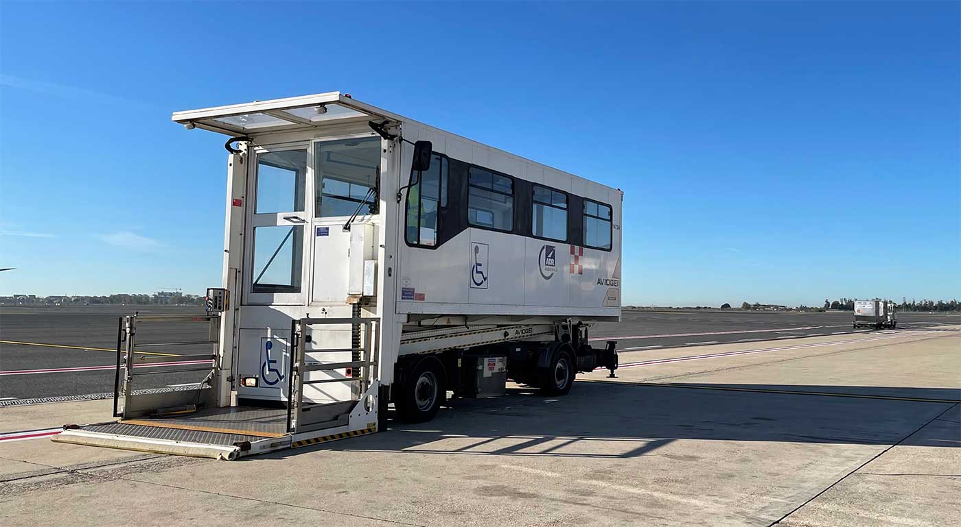 Passengers arriving to the airport who have a wheelchair stored in cargo should be reconnected with their mobility equipment either in the terminal or inside the AmbuLift. On long-haul flights from the United States to Rome, I have collected my wheelchair plane side in the AmbuLift, then transferred into a wheelchair accessible van that took me to the terminal building, where I cleared immigration, collected my luggage and passed through customs into the arrivals hall.