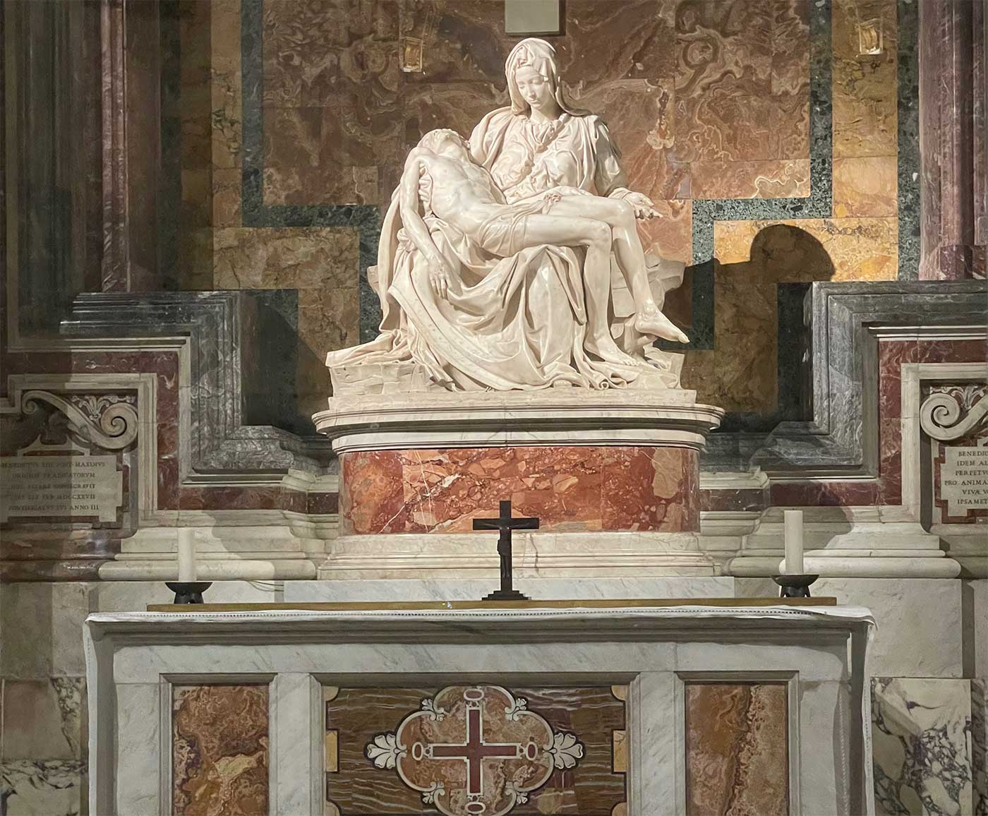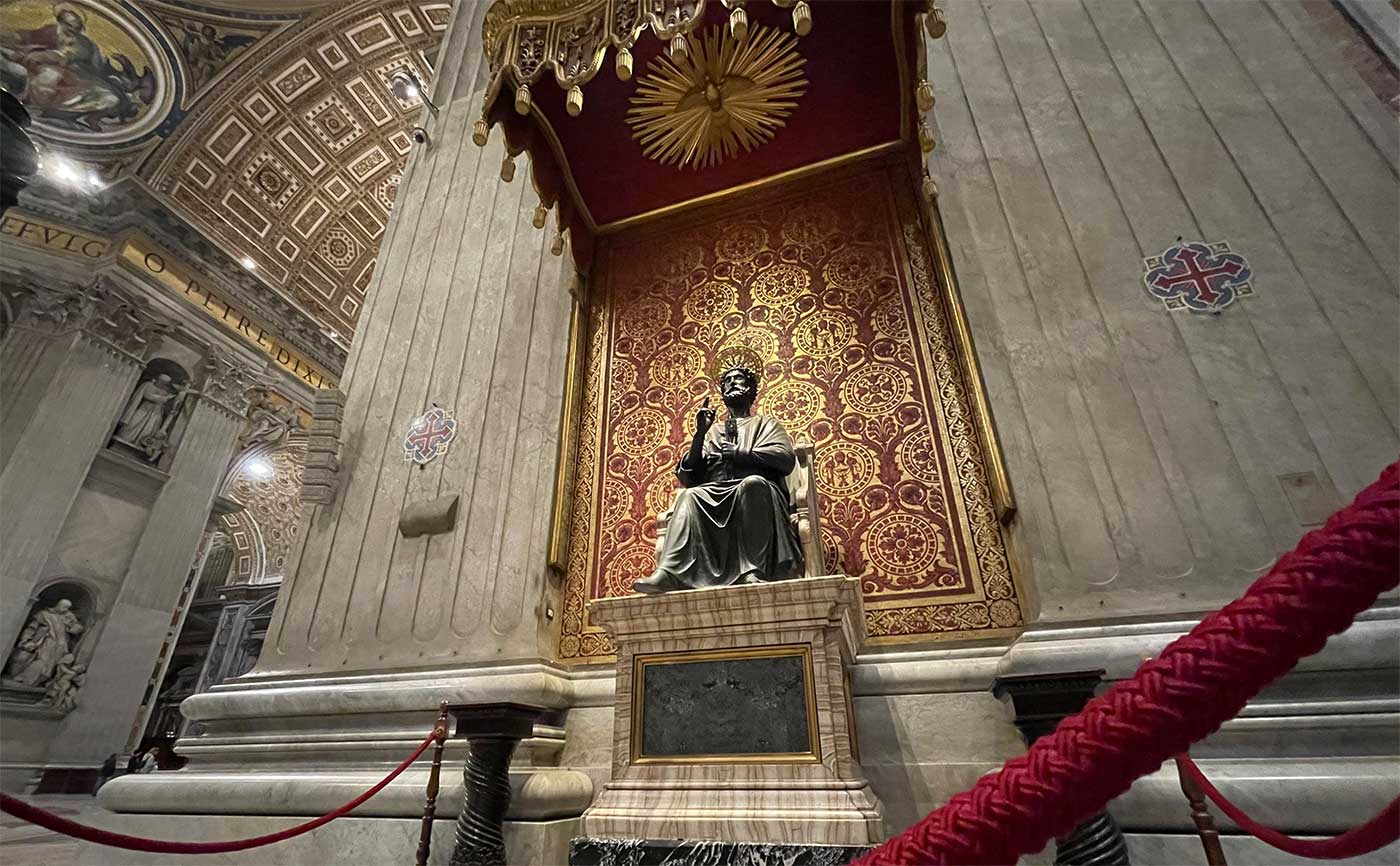 Each time I visit St. Peter’s Basilica, I am drawn to two sculptures: Michelangelo’s marble Madonna della Pietà, an image of the Virgin Mary cradling the body of Jesus Christ; and a bronze statue of St. Peter seated on a marble throne, holding the keys of Heaven in his left hand and raising his right hand to offer a blessing.