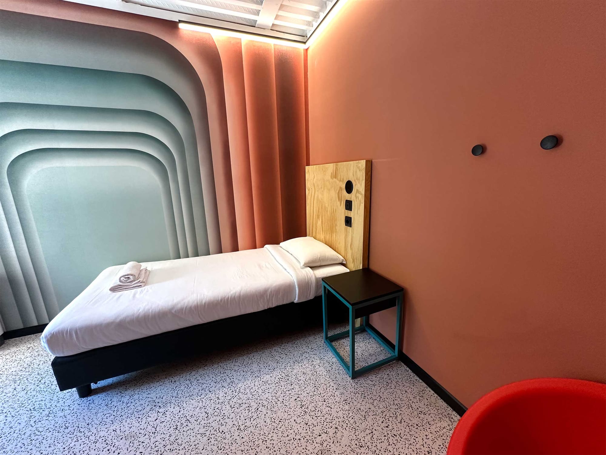 Although the beds were extremely firm, I slept comfortably and enjoyed waking up to sunlight beaming in through the window, which overlooks the courtyard. The room was spacious, especially given that this is a hostel, and I enjoyed the modern design touches throughout.