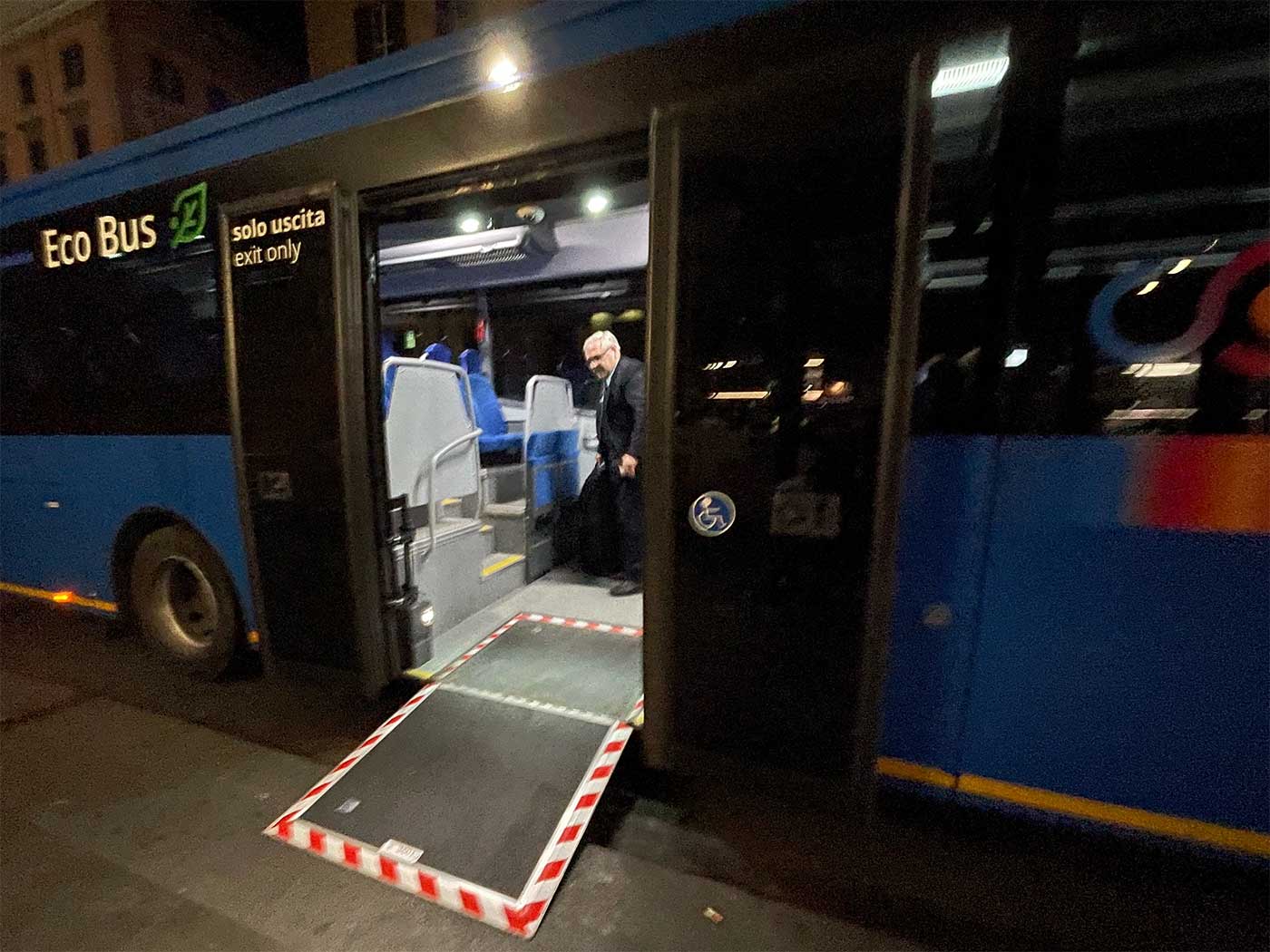 Rome’s city buses are operated by Atac S.p.A., Italy’s largest public transport company and one of the largest in Europe. Atac states that “98% of our bus fleet is equipped with boarding platforms and a wheelchair area to ease travelling for persons with mobility impairments.” My experience in Rome confirms this, as I never saw a city bus without a wheelchair ramp.