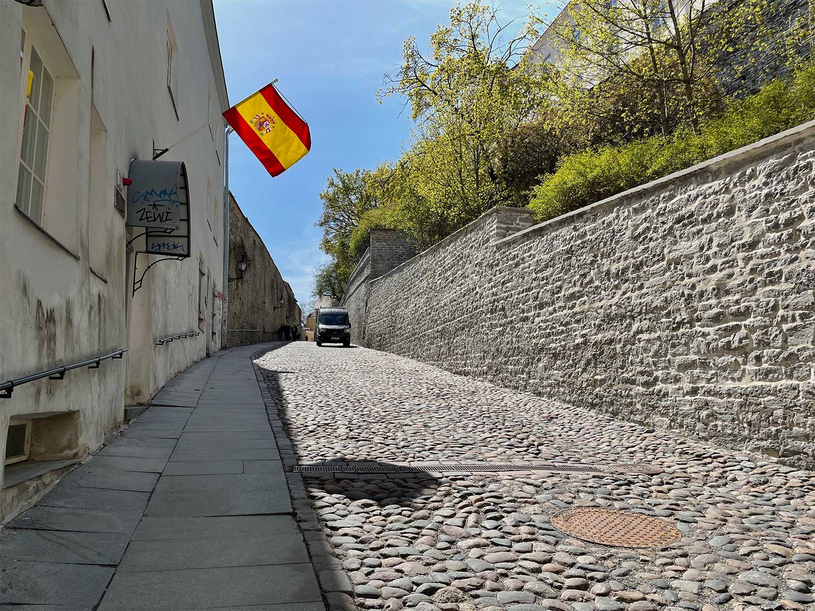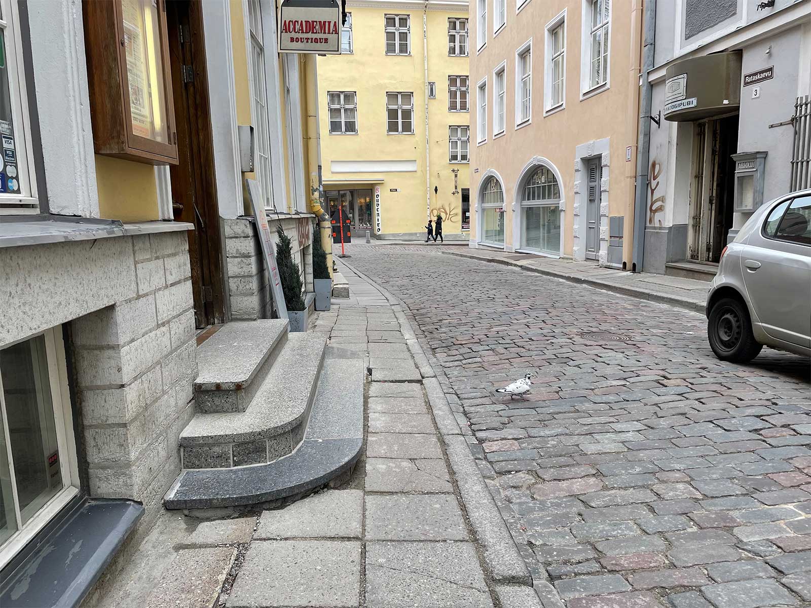 Tallinn is a hilly city, with significant elevation changes along the edges of the Old Town. Some passageways are not at all wheelchair-friendly, such as the one pictured above. At first look, it appears there is a steep ramp alongside a staircase, however there are multiple steps along the course of the “ramped” area.