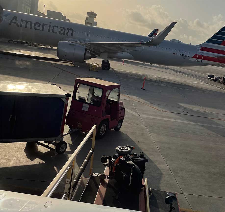 Even where those tools do exist, ramp crews may lift chairs anyway because doing so is faster. In the photo above, I caught four American Airlines ramp agents at New York’s JFK Airport lifting my power wheelchair despite a ramped baggage cart meant for barrier-free wheelchair loading situated only feet away. I dived deeper into American’s mistreatment of mobility device in the article Everything You Need to Know About Wheelchair Handling at American Airlines in One Photo — it’s an interesting read.