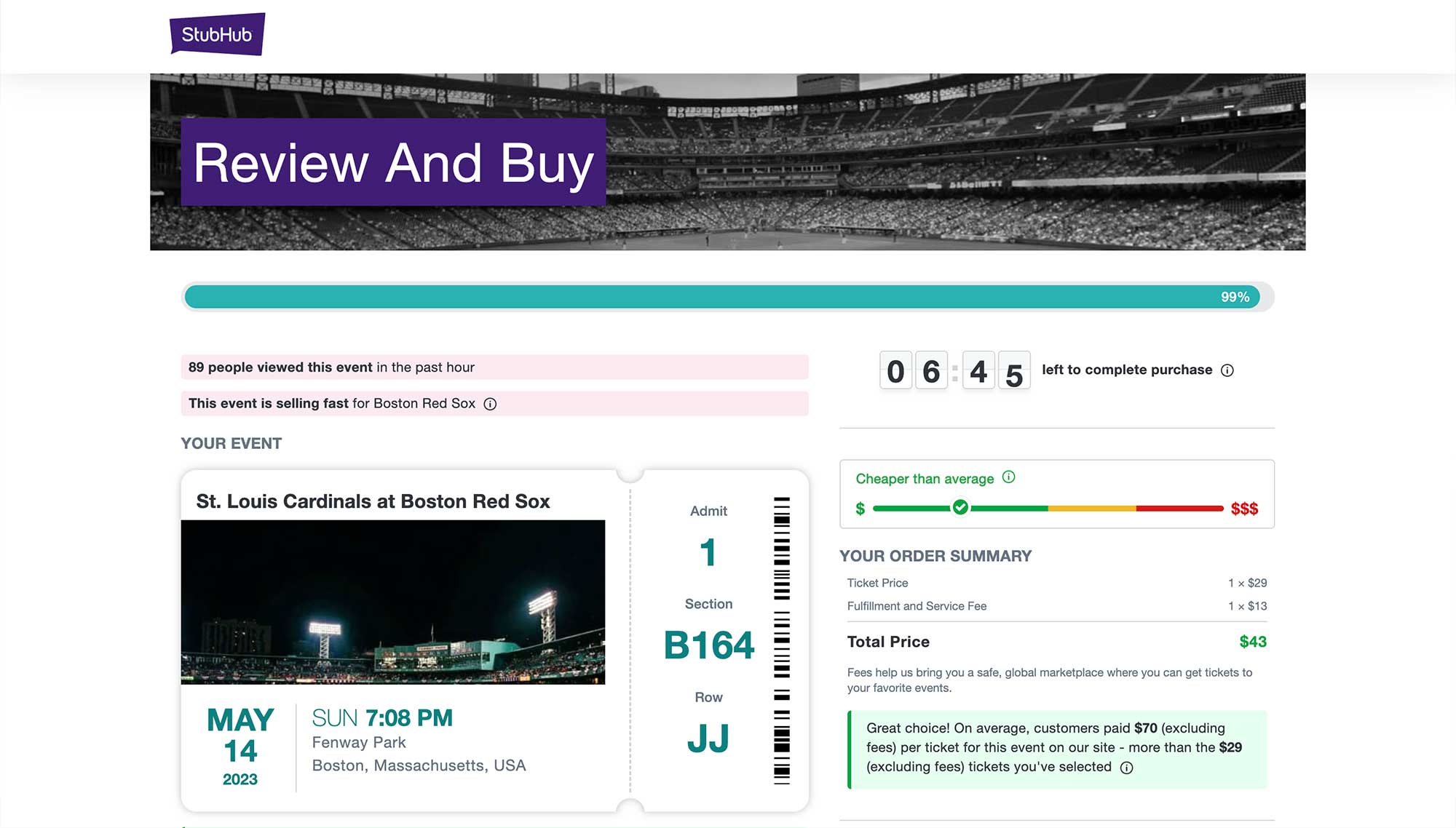 I purchase most of my event tickets through StubHub and this was the case during my recent trip to Fenway Park, where I watched the St. Louis Cardinals take on the Boston Red Sox. Via StubHub, I found a great deal on a ticket in section 164 — the price was $43 including all fees. To purchase an ADA accessible seat in that same section from the Red Sox ticket office, I would have had to pay $91 plus a ticketing fee — more than double the price.