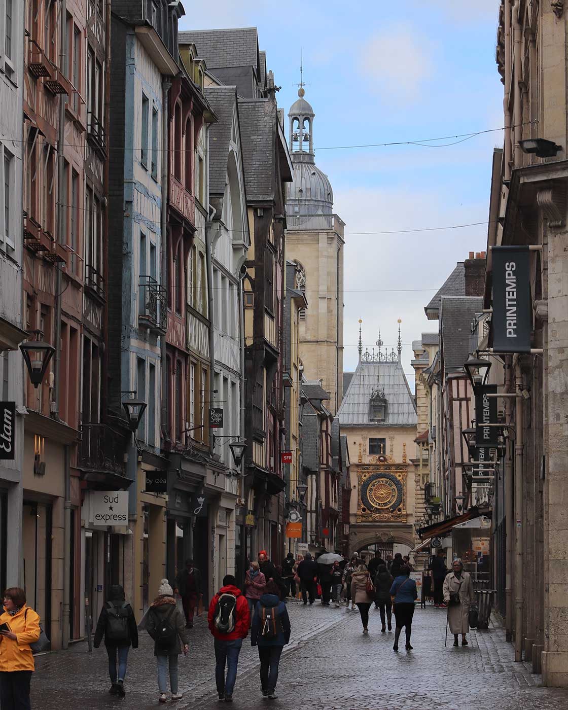Rouen was next – all day walking tour of the city – much too long for her to walk so we again used the chair. Some on city sidewalks, inside the cathedral, etc. but most on rough cobblestones so I reverted to going in reverse as the front wheels were a constant problem but we did see everything.