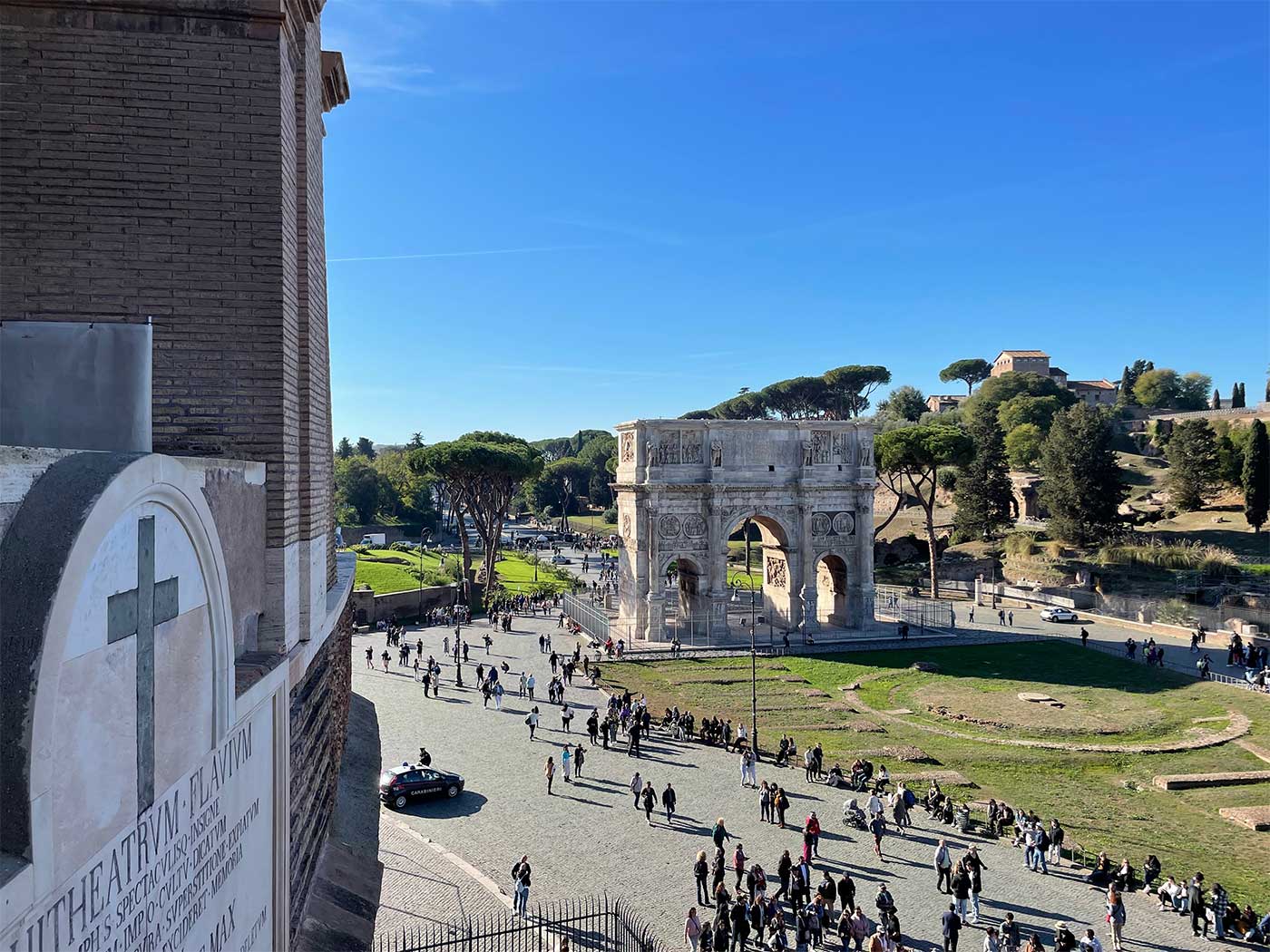 A number of viewing platforms and portals located on Level 2 allow visitors to view some of the surrounding monuments and ancient sites, including the triumphal Arch of Constantine and Palatine Hill.