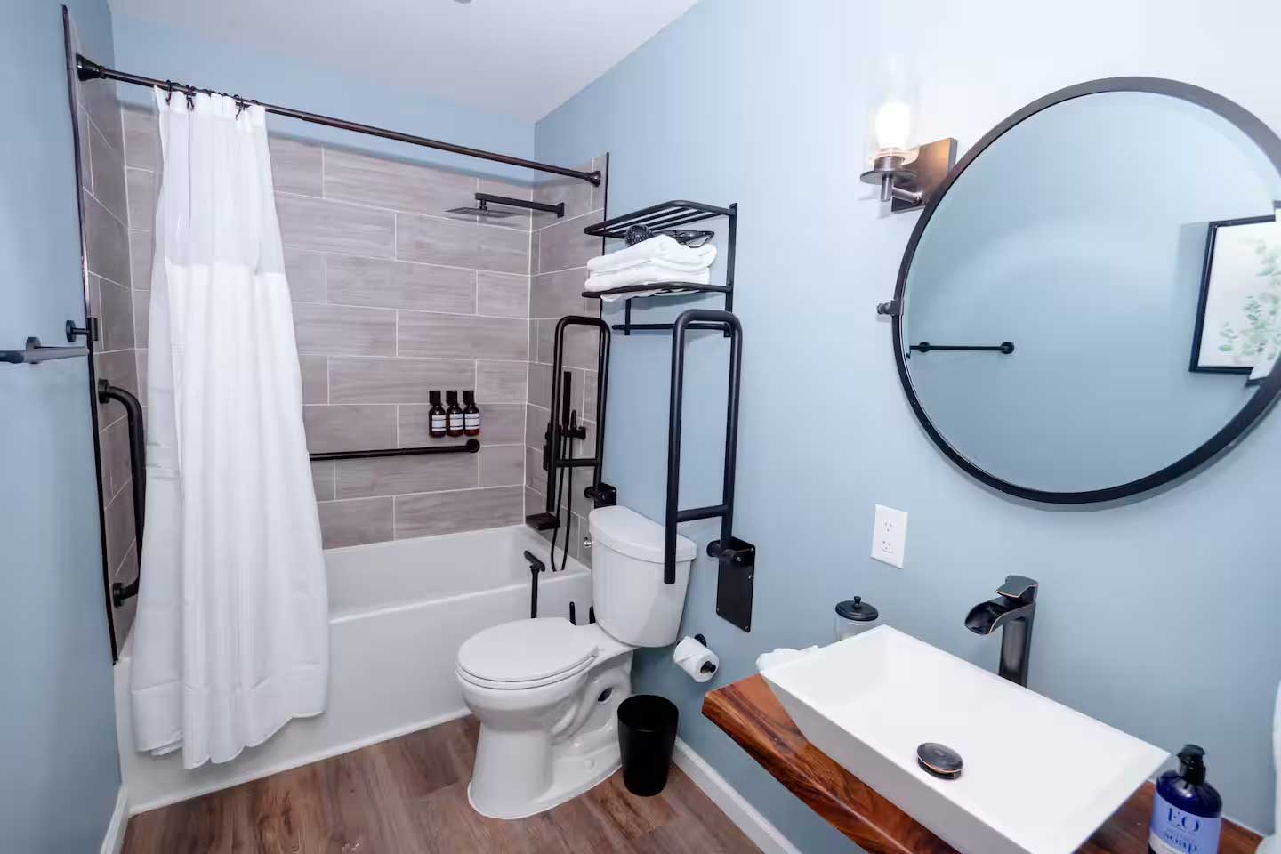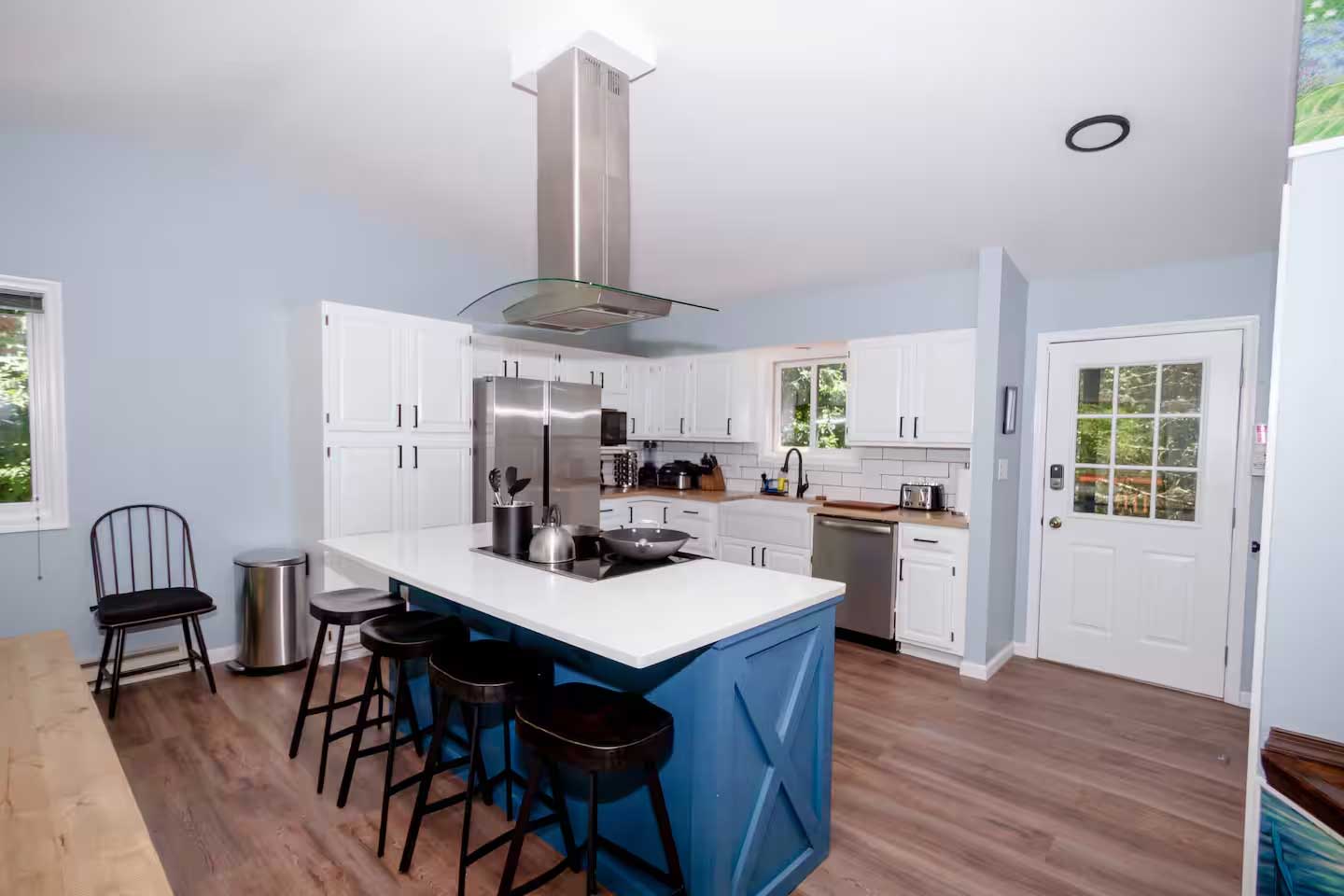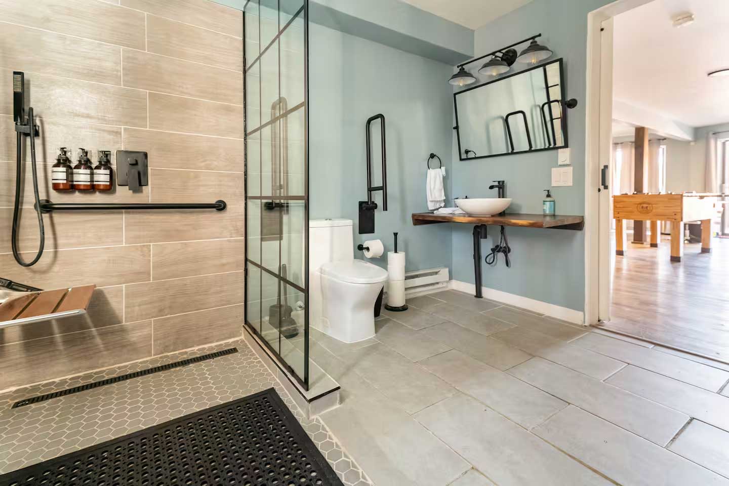 Our beautifully furnished four-bedroom, three-bathroom home is a haven for guests seeking both adventure and tranquility. With barrier-free entry, an elevator providing access between floors, and two ADA accessible bathrooms, everyone can enjoy their stay with ease. Wide, 32-inch stepless doorways to key areas of the home ensure ease of navigation and mobility throughout.