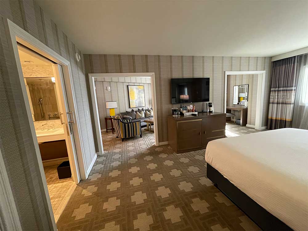 My casino offer, earned from previous play at the Caesars family of casinos, gave me a free room. At check-in, I received a surprise upgrade to a Studio Suite in the Julius Tower, which is the most centrally-located of the casino’s multiple guest room towers. For wheelchair users and those who prefer not to walk long distances, I recommend reserving a room in the Julius Tower.