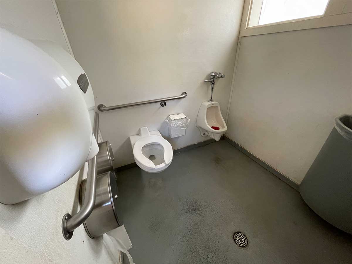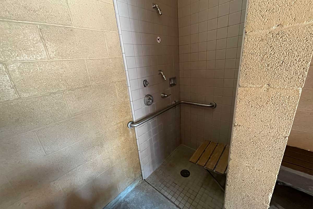 Barton Flats had wheelchair accessible bathrooms with ADA compliant toilets and grab bars. The shower facilities included transfer-type showers with wall-mounted seats, but there was no handheld showerhead. I opted to shower in the Winnebago Inspire RV.