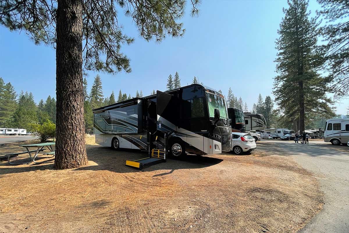 Camping options inside Yosemite National Park are extremely limited and in high demand (they sell out nearly a year in advance), so we instead reserved a spot at the private Yosemite Lakes RV Resort, which has space for more than 400 RVs.