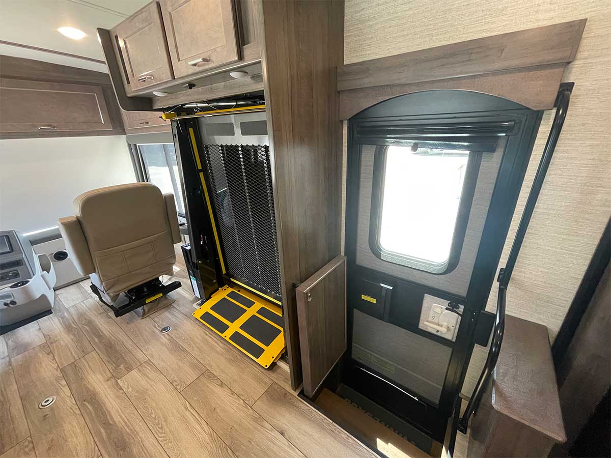 Wheelchair access to the RV is via a heavy-duty BraunAbility Century-2 wheelchair lift, which has a capacity of 800 pounds.